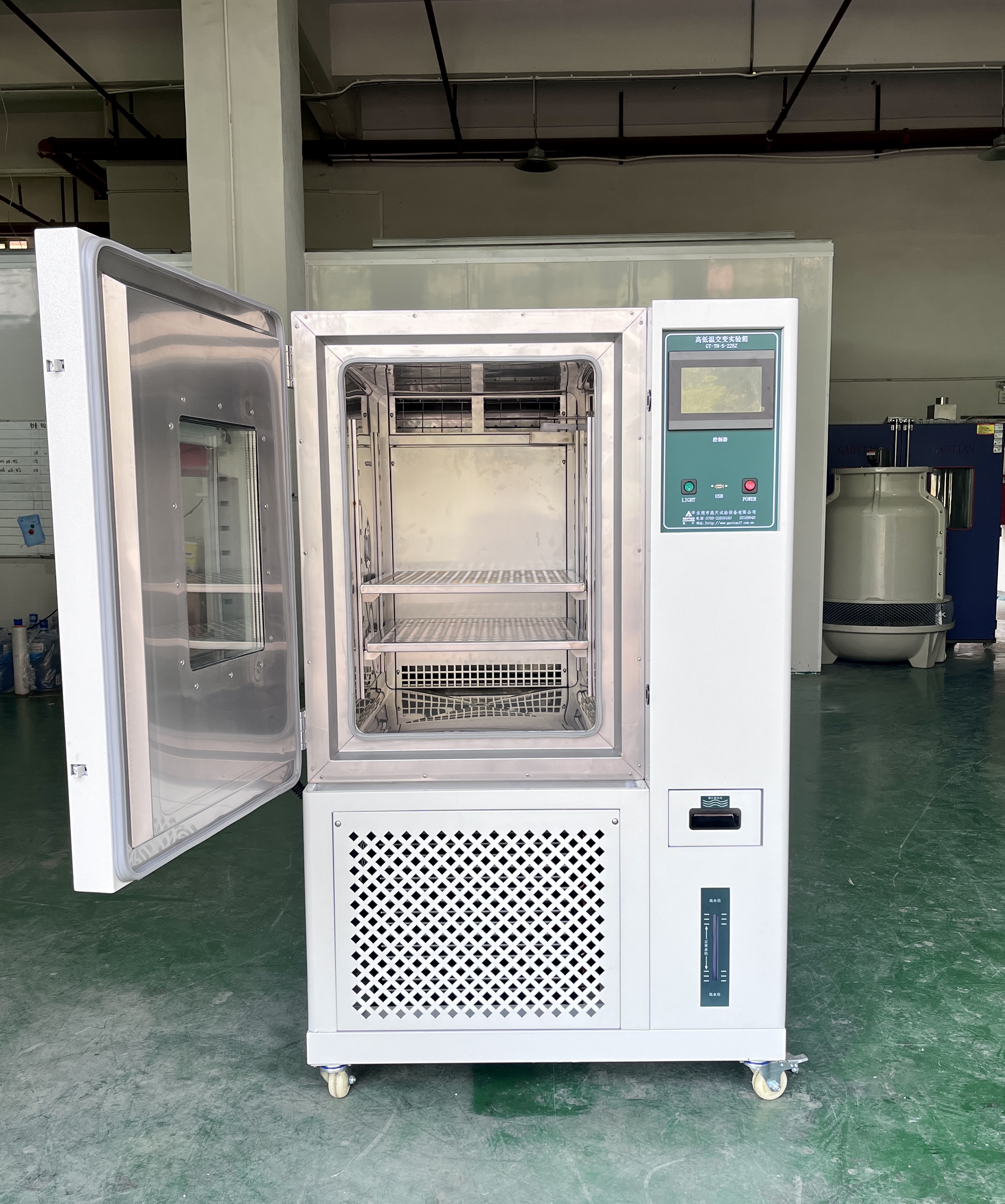 除濕系統:制冷除濕是常見的除濕方式,其除濕能力和控制精度影響著濕度控制效果。制冷系統的性能決定了蒸發器表面的溫度,從而影響凝結水量,即除濕量。精確控制制冷系統的運行參數,能夠實現穩定的除濕效果,提高濕度控制精度。此外,除濕系統的排水方式也會影響濕度控制,如果排水不暢,可能導致箱內濕度不穩定。